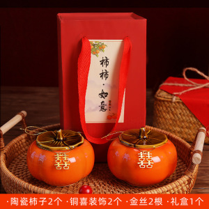 1個から送料無料、柿柿如意柿飾り、新築祝いの装飾、リビングルーム、新居、新居の装飾、陶器のテーブルセッティング、ウェディングジャー