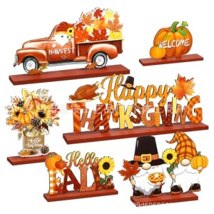 6 個秋カボチャパーティー装飾木製感謝祭吊り下げカードハッピー収穫パーティーギフト