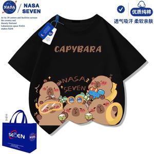 NASA卡皮巴拉纯棉T恤儿童洋气2025夏季新款水豚君短袖男女童上衣