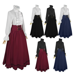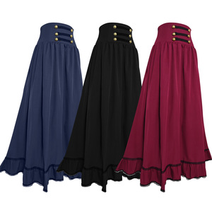 アマゾンの新しい夏のエレガントなプリーツ長袖フレンチハイエンドフリルハイウエストレディーススカート気質通勤婦人服