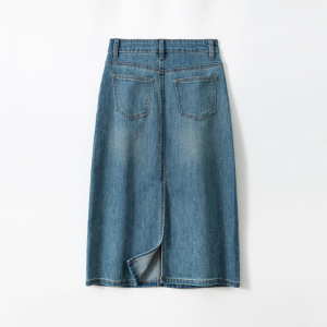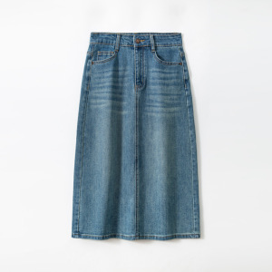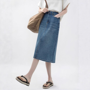 ブルーテンセルバックスリットデニムスカート レディース 2025夏 ハイウエスト 着痩せ効果 ストレッチ ミディアム丈スカート ハイウエスト 着痩せ効果