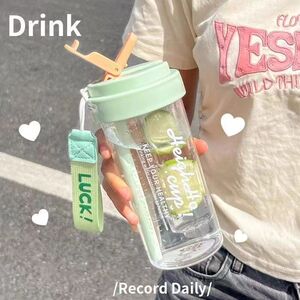 新しいデザインの水筒、女の子向け、高見えするストロー付き、携帯に便利なプラスチック製カップ、二重飲み口、夏用、シンプルで可愛いカップ