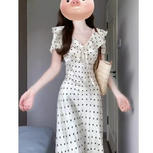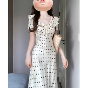 フランス風の波のポイントの泡の袖のワンピースの女性の夏の海辺の休暇の優しい風は腰の気質の独特な絶美の小さいスカートを収めます。
