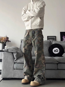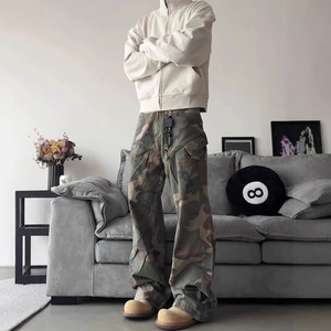 2025年新款美式迷彩工装裤男修身直筒牛仔裤高街vibe微喇叭裤批发