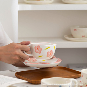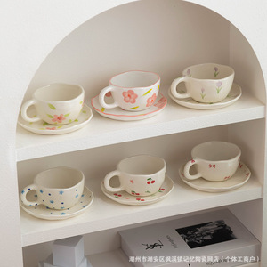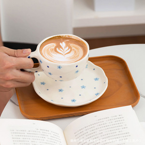 源メーカー高品質手描き青空白雲陶磁器コーヒーカップ皿手つまみ午後茶カップ皿お土産