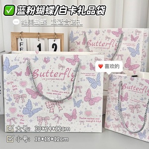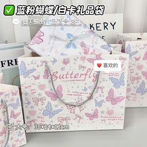 ブルー、ピンク、バタフライ、ホワイトカードギフトバッグ、Lサイズ [30*24*12cm]