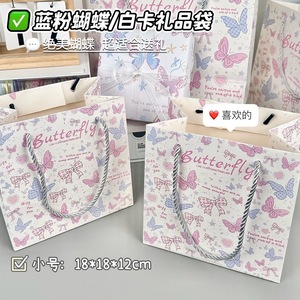 ブルー、ピンク、バタフライホワイトカードギフトバッグ、Sサイズ[18*18*12cm]