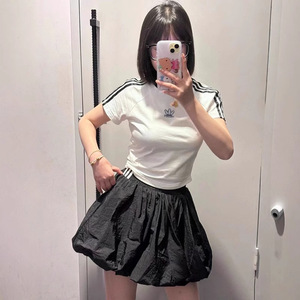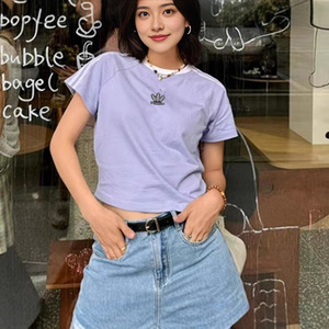 刺繍入り万能夏ラウンドネック人気ストレッチレディースジェニー同風3ストライプスラグランショートスポーツ半袖