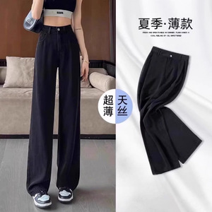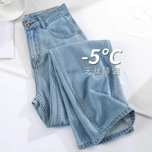 浅蓝色天丝牛仔裤女夏季新款大码胖妹妹mm高腰直筒显瘦垂感冰丝裤