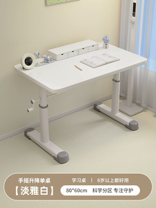 【エレガントホワイトテーブルとチェアセット】80*60ハンドリフトシングルテーブル+本棚+昇降式4本脚学習椅子