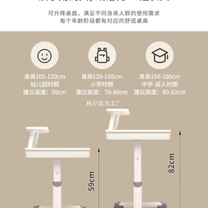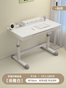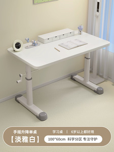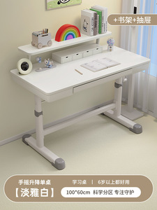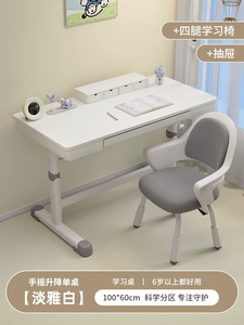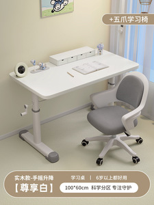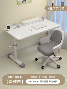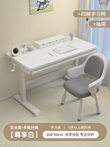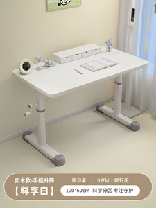 【限定ホワイト無垢材モデル・テーブル&チェアセット】100*60手動昇降シングルテーブル+引き出し+昇降学習椅子