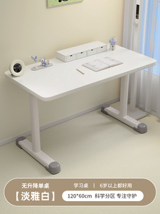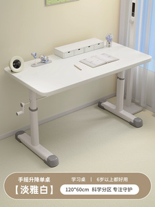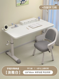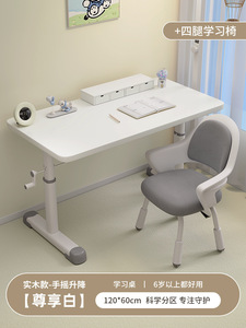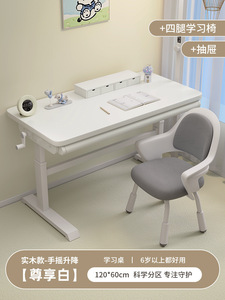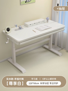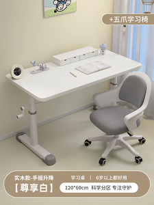 【限定ホワイト無垢材モデル・テーブル&チェアセット】120*60 手動昇降シングルテーブル+引き出し+昇降学習椅子