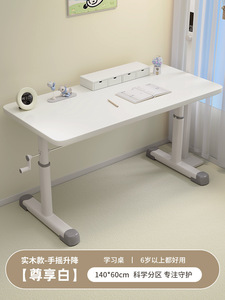 【限定ホワイト無垢材モデル・テーブル&チェアセット】140*60 手動昇降シングルテーブル+昇降学習椅子