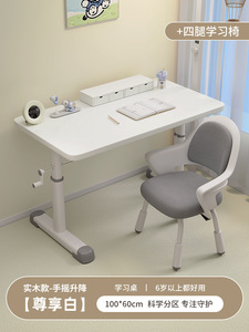 【限定ホワイト無垢材モデル・テーブル&チェアセット】100*60ハンドリフトシングルテーブル+昇降式4本脚学習椅子