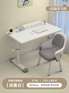 【エレガントホワイトテーブルとチェアセット】80*60ハンドリフトシングルテーブル+昇降式4本脚スタディチェア