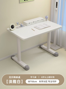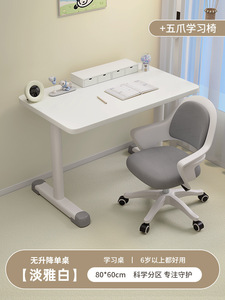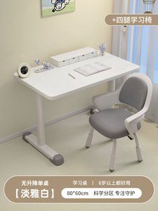 【エレガントホワイトテーブル&チェアセット】80*60昇降不可シングルテーブル+昇降式4本脚学習椅子