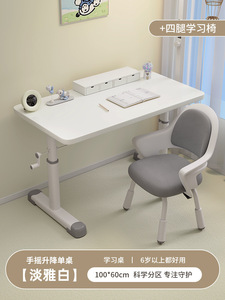【エレガントホワイトテーブルとチェアセット】100*60ハンドリフトシングルテーブル+昇降式4本脚学習椅子