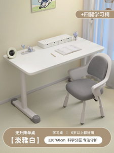 【エレガントホワイトテーブル&チェアセット】120*60昇降なしシングルテーブル+昇降式4本脚学習椅子