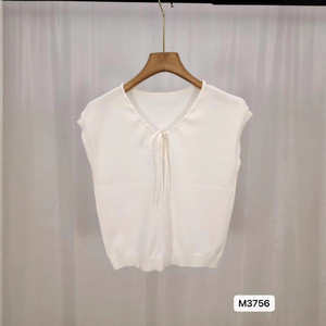 2025年感Vネックドローストリングニットカジュアル万能半袖ベスト女性用夏用透かし彫りエレガント着痩せトップス薄手
