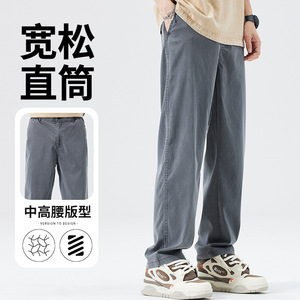 ロモンパンツメンズ 2025 新しい夏テンセルジーンズメンズルーズドレープワイドレッグカジュアルパンツ男性