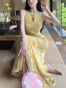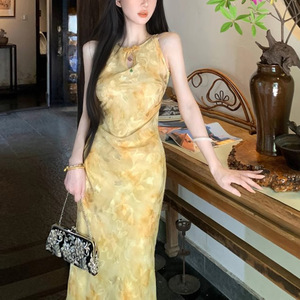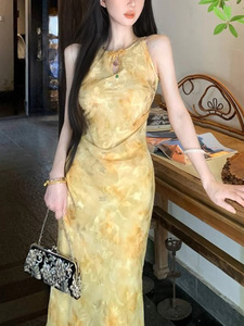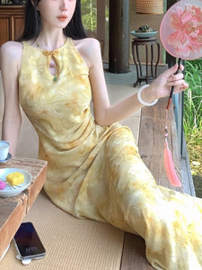 在庫あり [春志唐新] 国民風新中国風カットフラワーショルダー改良チャイナドレスミドル丈ドレス