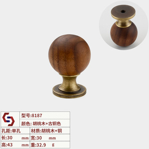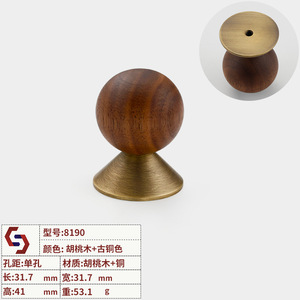メーカー直販フランス軽豪華胡桃木キャビネットドアハンドルキャビネットドア引き出し中古風実心銅ボール取っ手