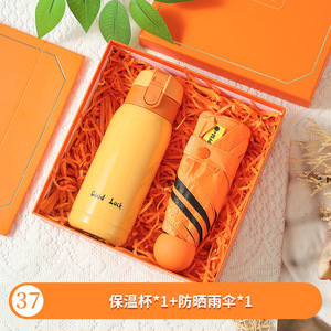 【オレンジギフトボックス+ギフトバッグ】魔法瓶カップ+日焼け止め傘