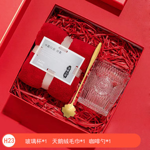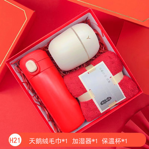 【赤いギフトボックス+ギフトバッグ】魔法瓶カップ+タオル+加湿器