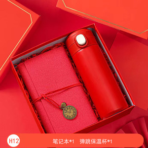 【赤いギフトボックス+ギフトバッグ】魔法瓶カップ+手帳