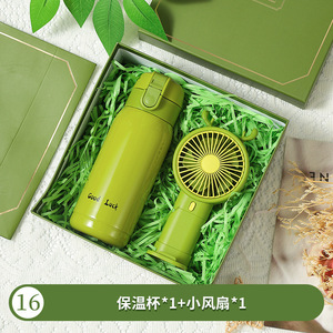 【グリーンギフトボックス+ギフトバッグ】魔法瓶カップ+小型扇風機