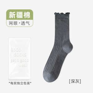 女性用靴下 春夏 軽量ミッドカーフソックス ウッドエッジバレエ風パイルソックス 通気性・防臭・吸汗性・長時間快適