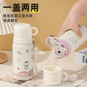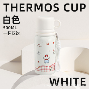 ウォーターカップ、高見え魔法瓶カップ、316ステンレス、かわいい、持ち運びロープ、バウンス、大人女子学生、1カップ3役