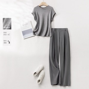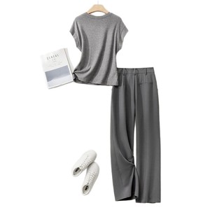 高級半袖Tシャツワイドレッグパンツ2点セットレディース2025夏ファッションセットカジュアルパンツセット