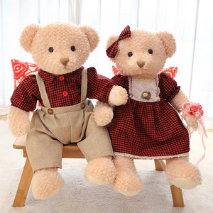 赤い格子縞のカップルクマ