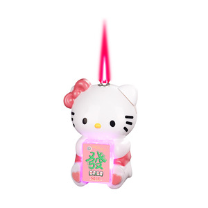 ハローキティの置物が輝いていて、防風の赤い炎のライターが彼女の対象の潮を送っています。