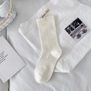 女性用パイルソックス、白いミッドカーフソックス、小さな革靴と合わせた春と秋、黒いソックス、薄い秋と冬の夏のボンレスソックス