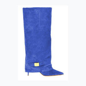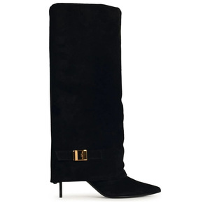 2024 秋と冬の新しい対外貿易女性のロングブーツポインテッドトゥハイヒール膝上スエードベルトバックルセクシーなパンツブーツ