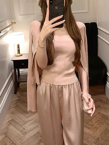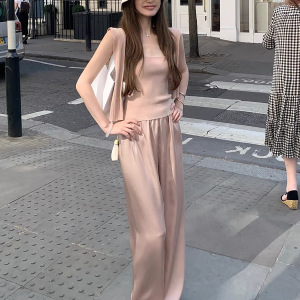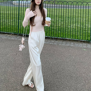 スポット入店BI買いだめ_店口コミ新色クールアイスシルクサテンスリップパンツドレープ薄手カジュアルパンツ