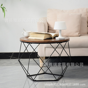 北欧复古圆形茶几铁艺网红沙发边几阳台咖啡桌现代小户型卧室桌