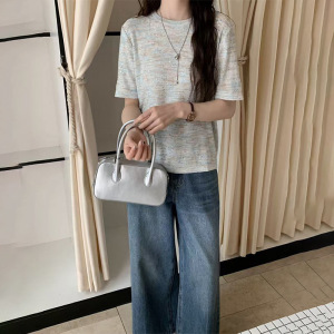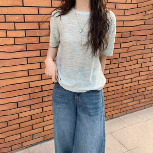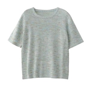 夏の新作ドット柄「星空シャツ」~ハーバライフリネンビーズ糸ニットボトムラウンドネック半袖Tシャツ女性用
