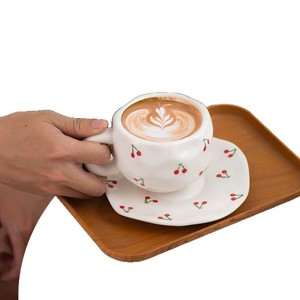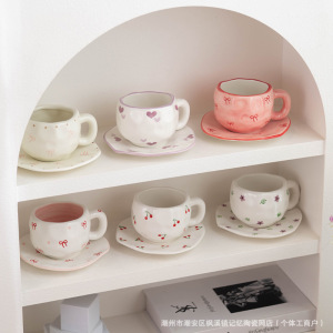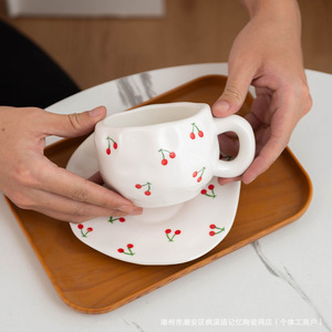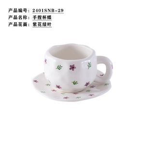 手作りカップins風少女心小砕花陶磁器コーヒーカップ皿手つまみ手描き不規則カップ皿昼寝茶