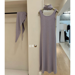 セナ WGWE5477 サスペンダードレス 新しいスタイルのドレープスリムニットロングスカート気質ベストドレス