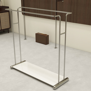服装店双排双杠货架不锈钢中岛展示架带轮子女装落地式挂衣架