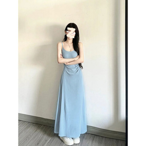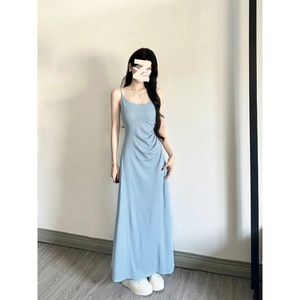 2025新型甘辛ニットワンピース女性夏フレンチストラップのロングスカート
