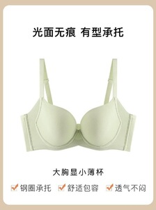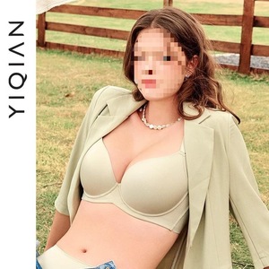 Yiqian ミントマンボウ リッチカップ シームレス下着 プッシュアップ 胸縮小 外張防止 たるみ防止 光沢のある薄いブラジャー コットン