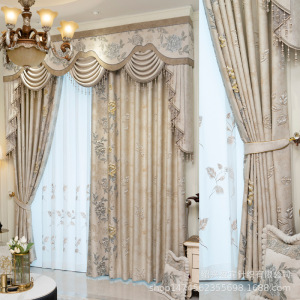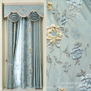 中国式ジャカード客間カーテン贅沢新中国式別荘寝室遮光レリーフカーテン布カーテン卸売り