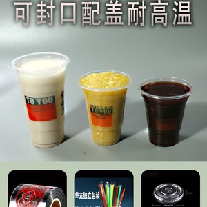 Wenpai 使い捨て朝食豆乳カッププラスチックお粥カップ 95 口径シール蓋付きミルクティージューステイクアウト包装