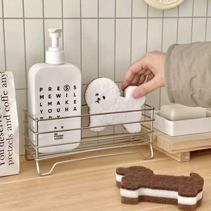 アニメかわいい犬の子犬の猫のスポンジは台所を拭きます。