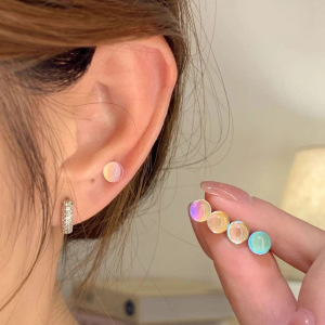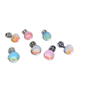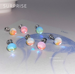 梦幻半圆耳钉多巴胺彩色圆球睡觉免摘平底螺丝耳蜗医用钢耳骨耳饰