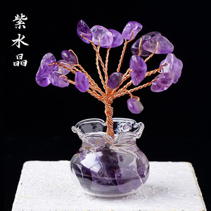 天然シトリンフォーチュンツリーオーナメントアメジストフォーチュンツリーオフィスワークステーション形而上学デスクトップ装飾グッズ